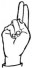 На ћирилици написано БОГДАН ЧАЛОШЕВИЋ састоји се из 15 слова [?]. Исписано ћириличном једноручном азбуком за глувонеме:
